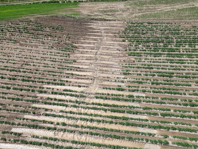 Také toto pole je dlouhodobě sužováno erozí – prokazatelně se opakovala v letech 2007, 2010, 2019, 2020, 2022 a 2024. Eroze nastane vždy, když jsou na poli brambory, kukuřice nebo řepka. Nezabrání ji ani to, že je pole velmi malé, hluboko pod limitem maximální velikosti.