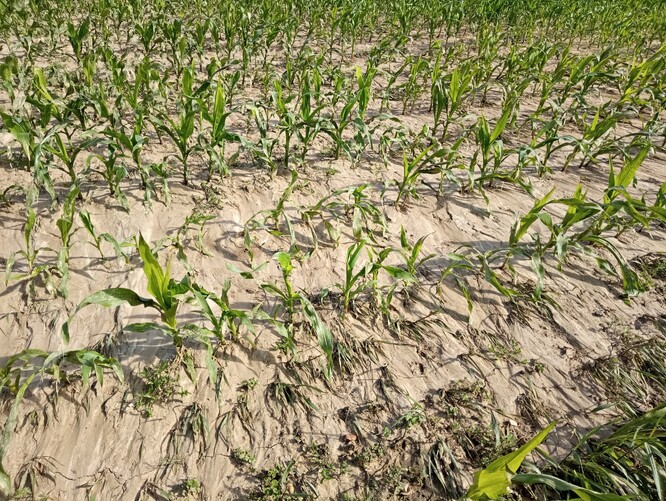 Ukázkovou erozí je následující příklad, kdy zemědělec po sklizni žita „připravil půdu“ na setí ozimů, v tomto případě řepky. Jenže přišla tradiční letní bouřka, která rozdrobenou ornici i s vysetými semínky řepky spláchla z pole pryč.